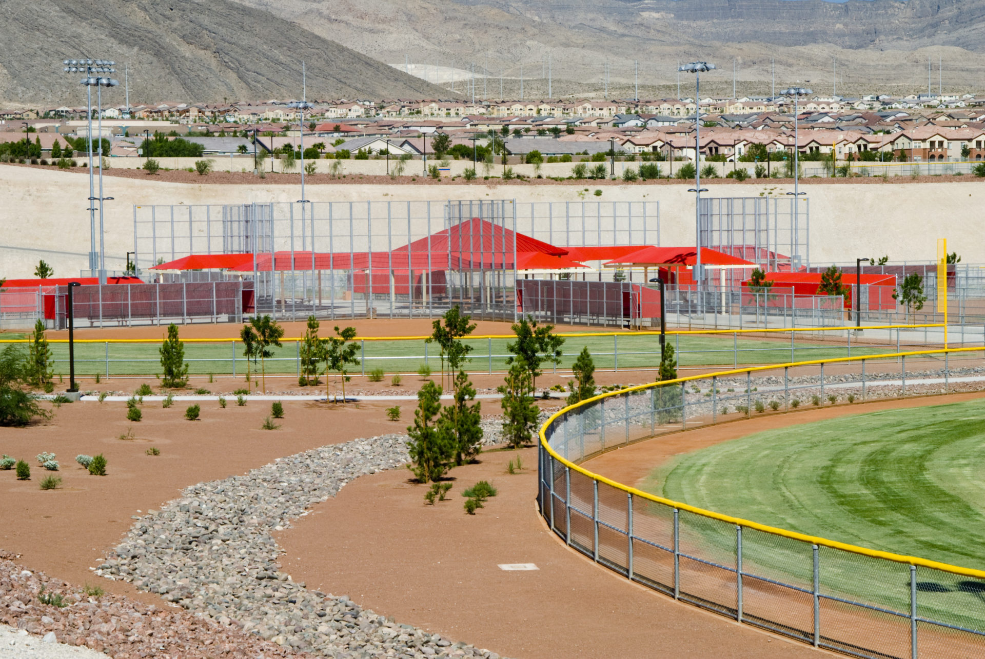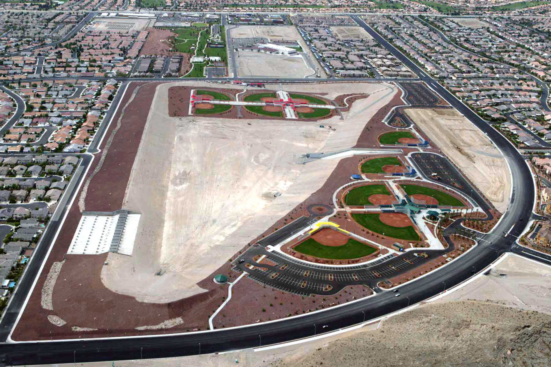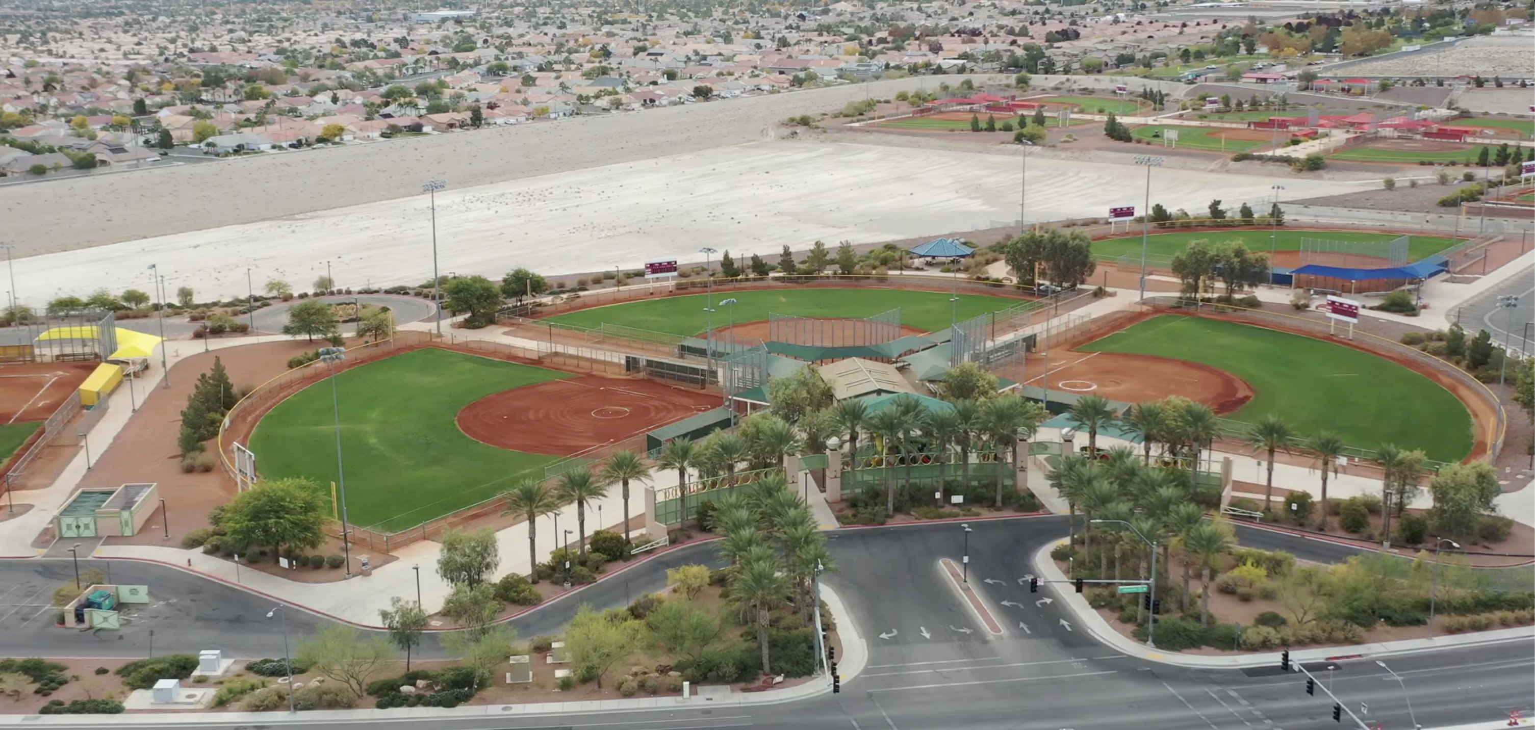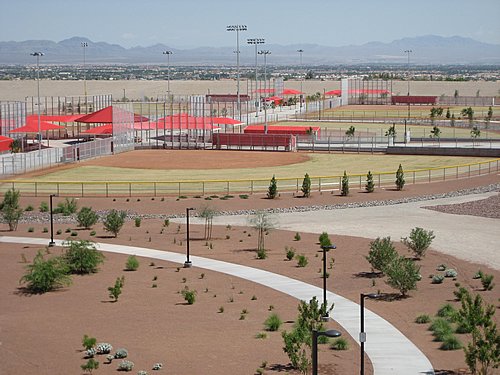Majestic Park in northwest Las Vegas is a tournament-ready, multi-field baseball/softball complex with lighted diamonds, well-kept playing surfaces, and plenty of warm-up space that keeps teams close and schedules running on time. The campus-style layout offers centralized parking, clear field numbering, convenient restrooms and concessions, and easy access to major highways and nearby Summerlin hotels and dining. With wide concourses, bleacher seating, and desert mountain views, Majestic Park delivers a clean, coach-friendly setting that works just as well for large weekend events as it does for league play and showcases. [youtube video rights: @lasvegasparks2310]